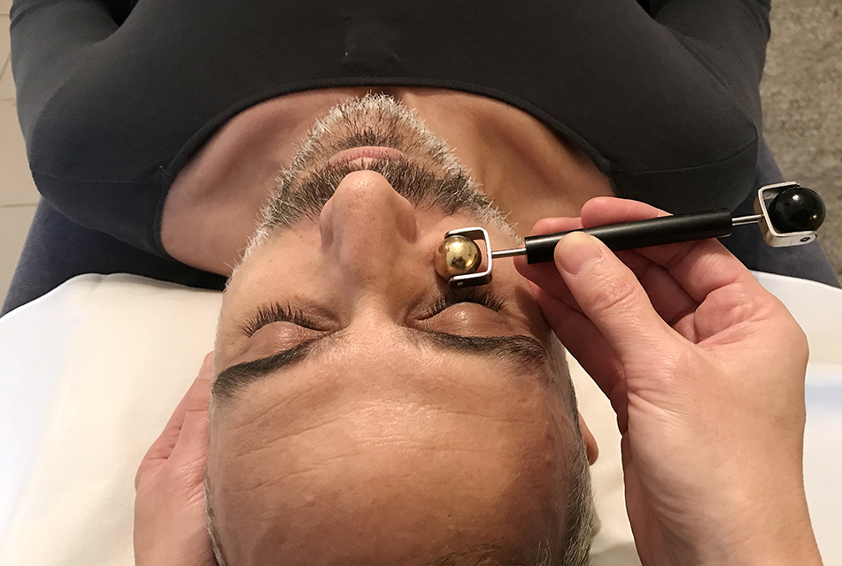 Vous êtes allongé sur la table de consultation et je stimule sur votre visage des zones réflexes correspondants à vos symptômes tout en maintenant un dialogue pour ajuster les stimulations au fur et à mesure du soin.